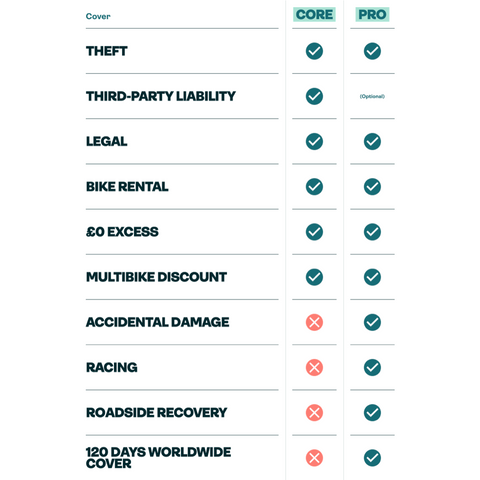 Theft / Legal / Bike rental / Excess-free bike claims / Household discounts